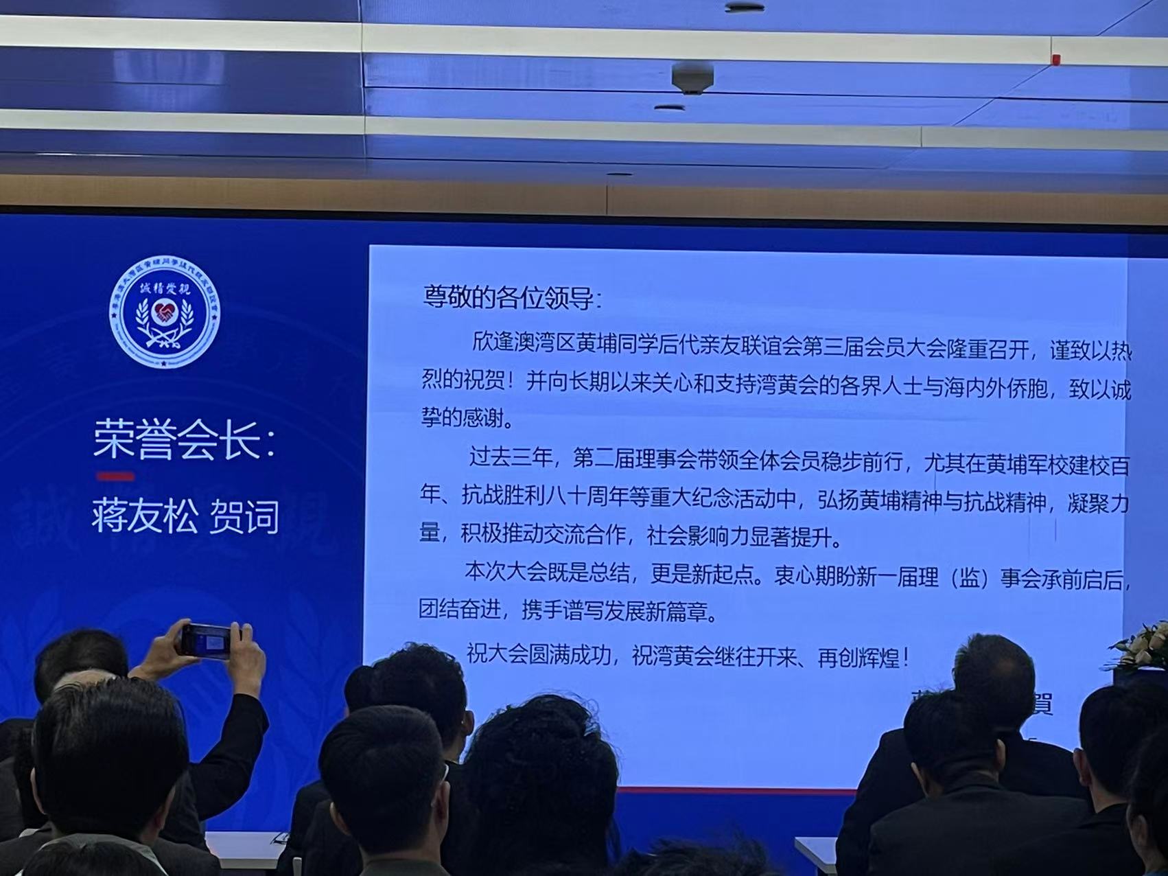 2025年10月25日,粤港澳大湾区黄埔同学后代亲友联谊会(简称“湾黄会”)在广州隆重召开第三届会员大会。来自粤港澳及海外各地的理监事、会员代表共聚一堂,总结过去三年的工作成果,选举产生新一届理监事会领导班子,并规划未来发展方向。
